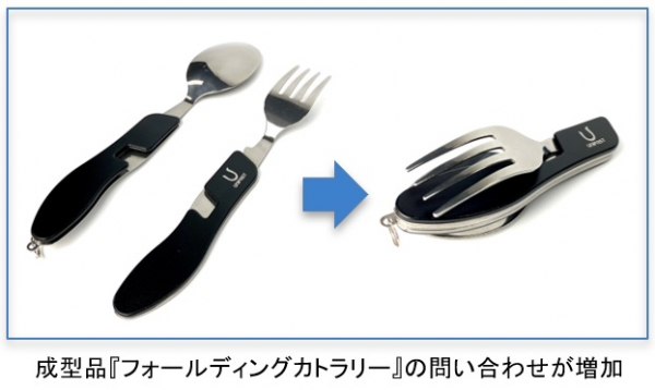たとえば、2022年に施行される予定の「プラスチック資源循環促進法」では、コンビニエンスストアや飲食店にて使い捨てスプーンやフォークのようなワンウェイプラスチックの有料化が検討されていますが、 環境問題意識が高い企業からは、マイカトラリーをノベルティグッズや販促品にしたいという問い合わせを早くもいただいています。当社では、成型品である折り畳み式のマイカトラリー『フォールディングカトラリー』とそれを収納するための縫製品「抗菌巾着」を組み合わせたオリジナルグッズも、ワンストップで提案できる強みがあり、今後さらに問い合わせが増えると考えています。