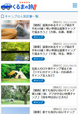 くるまの旅ナビでは、キャンプにまつわるコンテンツにも注力しており、様々な記事を掲載しています。