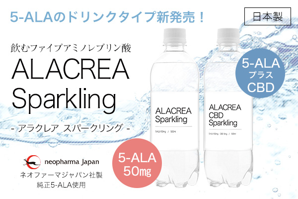 5-ALAを50mg、CBDを5mg配合した「ALACREA CBD Sparkling」の2種類を販売
