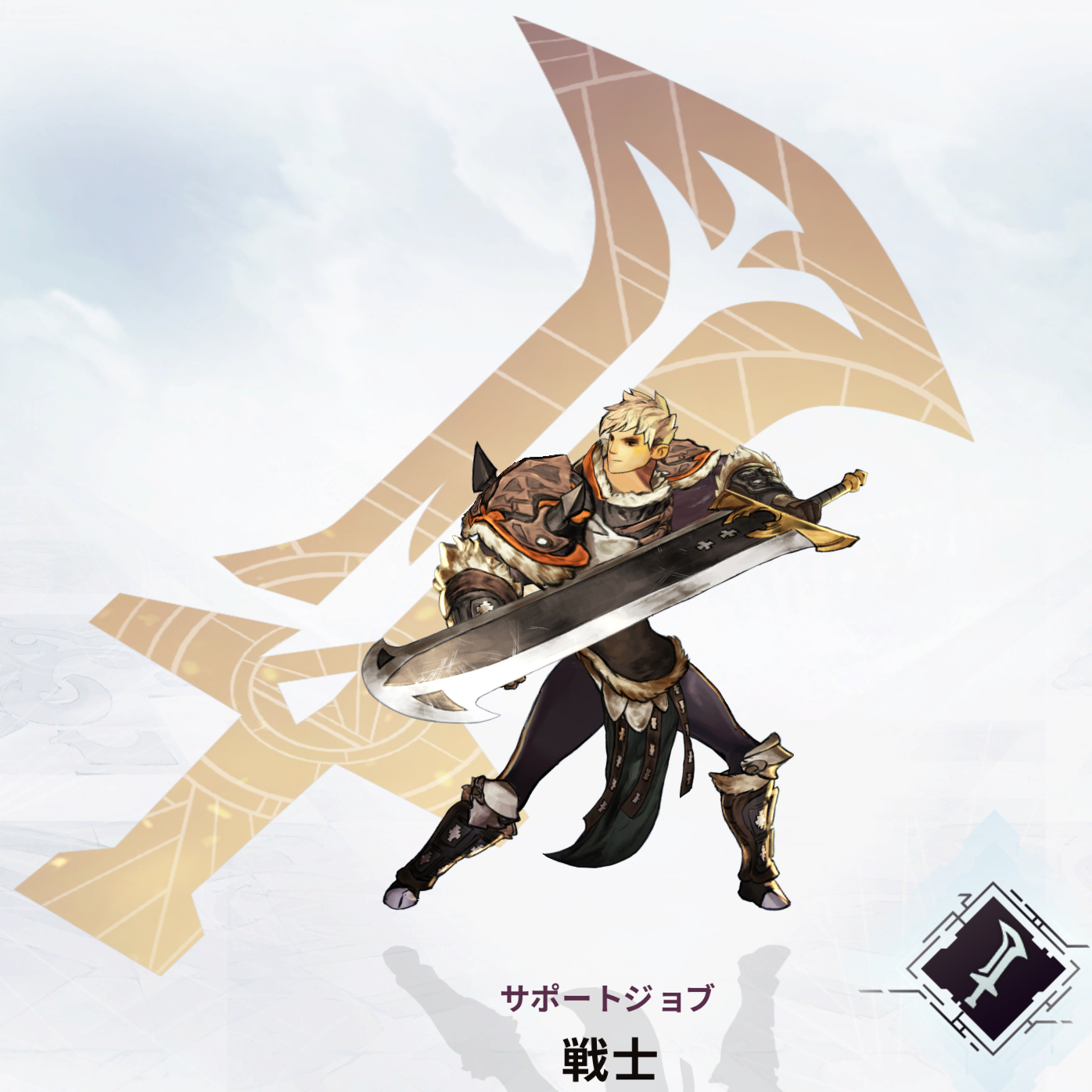 戦士は強力な両手剣を武器として戦う。パワフルな物理攻撃を得意とし、HP消費アビリティーを使用する。