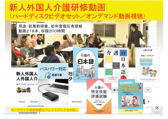 一般社団法人外国人介護職員支援センター(千葉県市川市、代表理事 井上文二)は、来日する外国人介護職のための初年度現場研修プログラムを完成させ、11月13日に介護施設事業者等への案内を開始しました。プログラムは「新人外国人介護研修プログラム」と名付けられ、ハードディスク入りビデオ方式かオンライン視聴方式で利用できます。来日前後から就業1年目までの研修を想定。プログラム前半は入国制限措置にともなう来日後14日待機期間中に技能実習生や特定技能外国人のスマホ利用学習にも最適なプログラムとなっています。