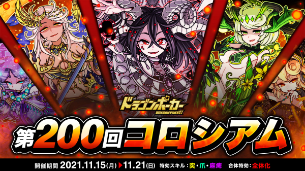 株式会社アソビズム(本社:東京都千代田区、代表取締役:大手智之)は、App Store・Google Playにて好評配信中のリアルタイム合体カードバトル『ドラゴンポーカー』で、2021年11月15日(月)より「第200回コロシアム本戦」を開催いたします。