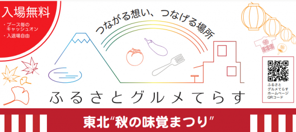 株式会社インターン(本社:東日本橋、代表:半澤洋)は、2021年11月20日(土)に生産者と地域の人々を繋ぐイベントふるさとグルメてらすを開催します。今回のテーマは、「東北”秋の味覚まつり”」です。
