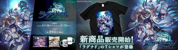 TVのCMや各種SNSで話題沸騰のオンラインRPG「ラグナドール」が、はずれ無しのオンラインくじサービス「カワセルくじ」と限定グッズ販売サービス「カワセル」に一斉に新登場です!「カワセルくじ」からは、S賞に大型タペストリー、A賞に大型クッション、B賞以降はマグカップやハンカチタオル、コースターなど充実の内容となっております。また「カワセル」からは、迫力満点のビジュアルを使用したTシャツが発売します。