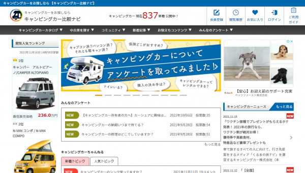 国内で販売されているキャンピングカーのスペックやオーナーなどによるクチコミ評価を比較できる情報サイト「キャンピングカー比較ナビ」を運営するキャンピングカー株式会社(本社:東京都渋谷区、代表取締役:頼定 誠)は2021年11月16日、「キャンピングカー比較ナビ」内でキャンピングカーの気になるところをアンケートしている「みんなのアンケート」https://japan-crc.com/ccn/polls/の調査結果をお知らせいたします。