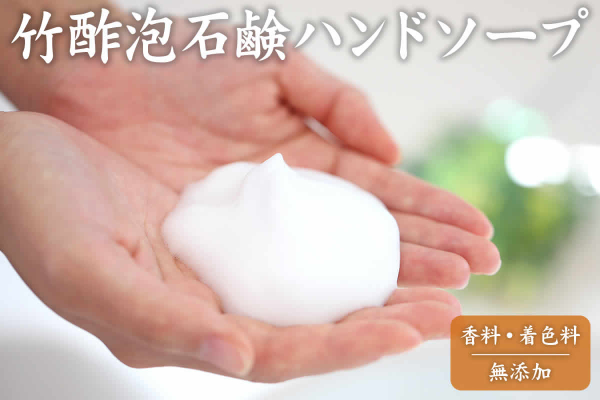虎斑竹専門店 竹虎(運営:株式会社山岸竹材店)では新たに竹酢泡石鹸ハンドソープを販売開始しました。新型コロナウイルス感染症の流行のため、手を消毒をしたり洗う機会が増えました。手荒れでお悩みの方も多のではないでしょうか。そんな皆様にも安心してお使いいただける竹酢液を配合した、ポンプ式の泡石鹸ができました。