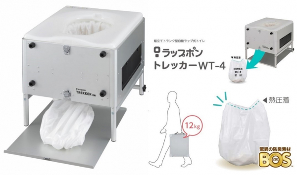 水を使わず衛生的に使えるポータブルとは思えない高級トイレ「ラップポン トレッカーWT-4」のレンタル需要の人気が急上昇。洋式トイレのように使えるため、お年寄りや腰の悪い方にも利用しやすく、和式トイレしかないキャンプ場でも使えるなど、緊急時以外に使えるトイレとして利用される傾向がある。