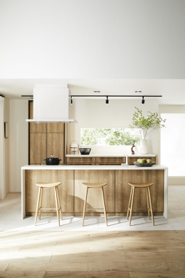 LDK 空間においてキッチンや周辺収納へ求められる高いデザイン性と、「クリンレディ」から続く清潔・安心・安全なステンレスキャビネットが大きな魅力。そのほか、洗エールレンジフード、オールスライド収納、流レ―ルシンクなど、スタイリッシュなデザインからは想像できない本格的な機能が満載です。2022年2月には『デュアルトップ対面』や『流レールシンクワイド』等の新機能をラインナップし、モデルチェンジを行います。