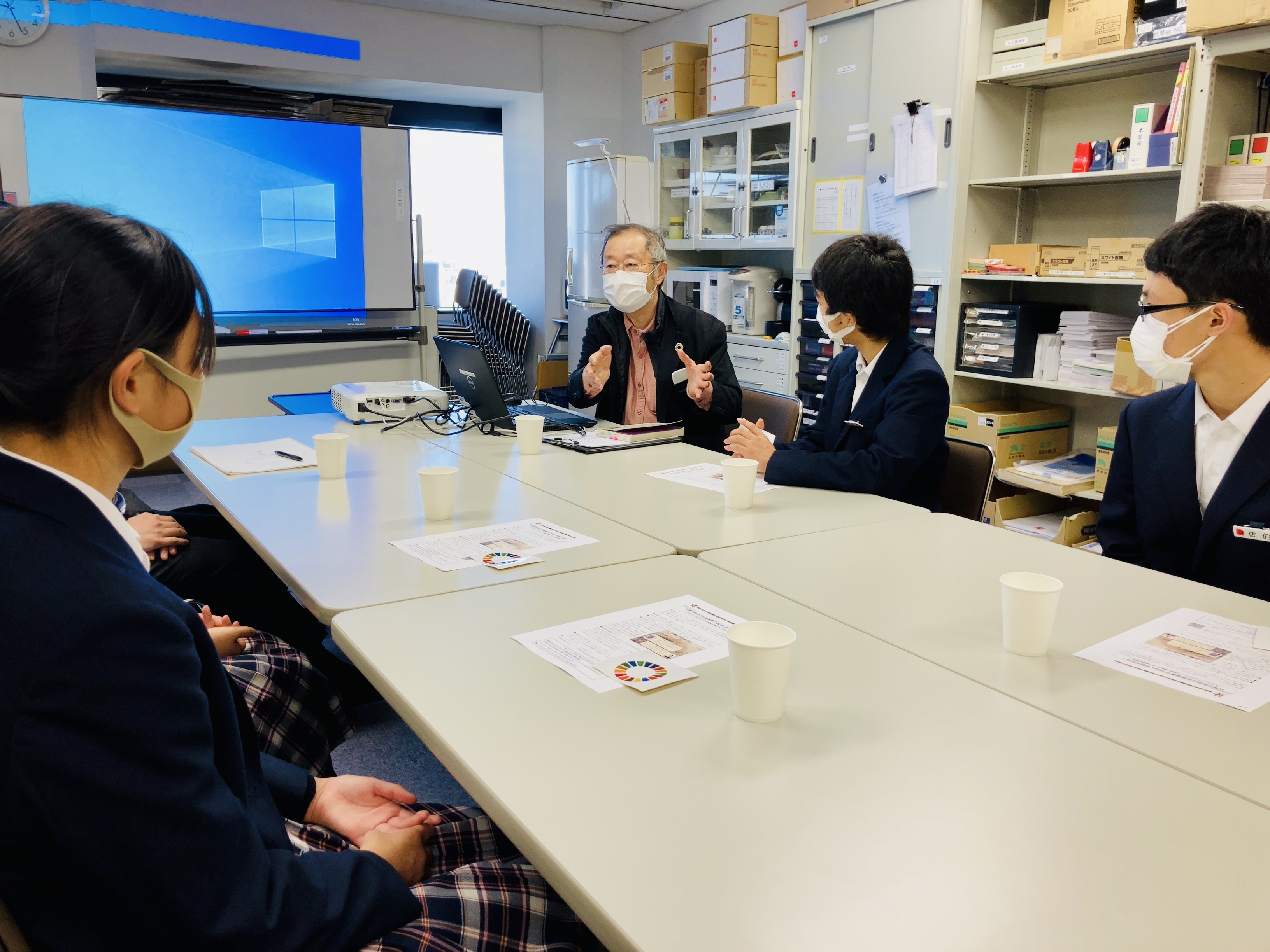 今回は「自分ができるSDGsへの貢献を考え実践すること」をテーマとして、生徒たちの2チームからリーブ21に対してプレゼンテーションをしました。