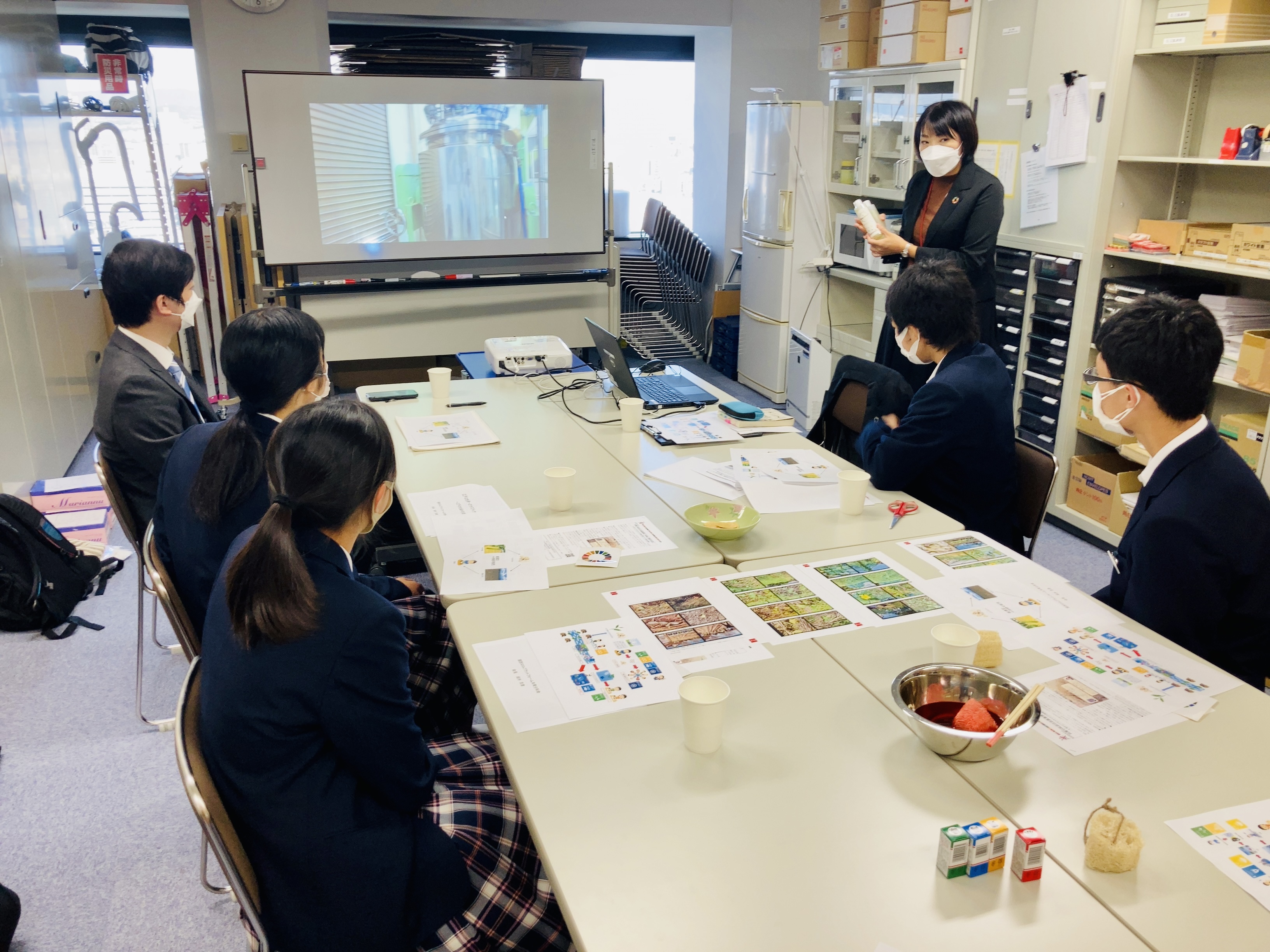 リーブ21からも、水質浄化シャンプーの製造工場の動画などを使い、SDGsへの取り組みの現場について説明しました。