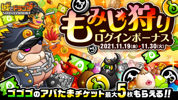 株式会社アソビズム(本社:東京都千代田区、代表取締役:大手智之)は、App Store・Google Playにて配信中の『城とドラゴン』で、「もみじ狩りログインボーナス」を2021年11月19日(金)より開催します。