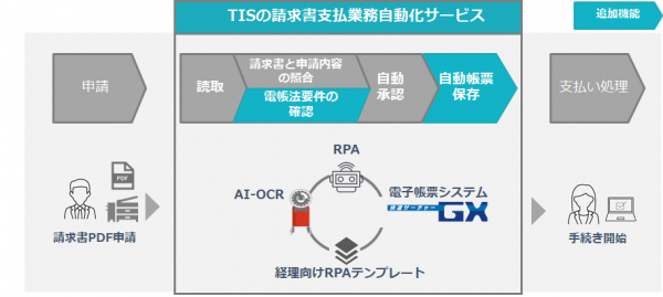 TISインテックグループのTIS株式会社(本社:東京都新宿区、代表取締役社長:岡本 安史、以下:TIS)は、企業の経理部門に特化し請求書支払プロセスを自動化する「請求書支払業務自動化サービス」(以下:本サービス)に電子帳簿保存法(以下:電帳法)を踏まえた新たな機能を2021年11月19日より拡充したことを発表します。