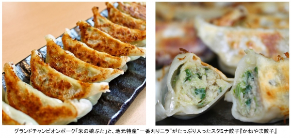 当社は、金山町で生産された“一番刈りニラ”のみをたっぷり使ったスタミナ餃子を開発・製造し、当社の販路を活かして販売することで、地元の特産品の販売促進と認知拡大、雇用促進などを図り、地元に貢献します。