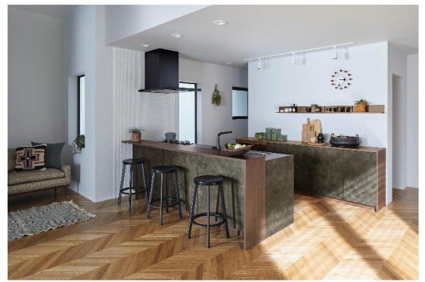 「キッチンは魅(・)(み)せたいけど、手元は見(・)られたくない」。開放的な対面キッチンを検討するうえでのこの悩みを解決したい、との思いで生まれた新しい対面プラン。これまでの対面システムよりも、更にデザイン性と開放感を高めました。
