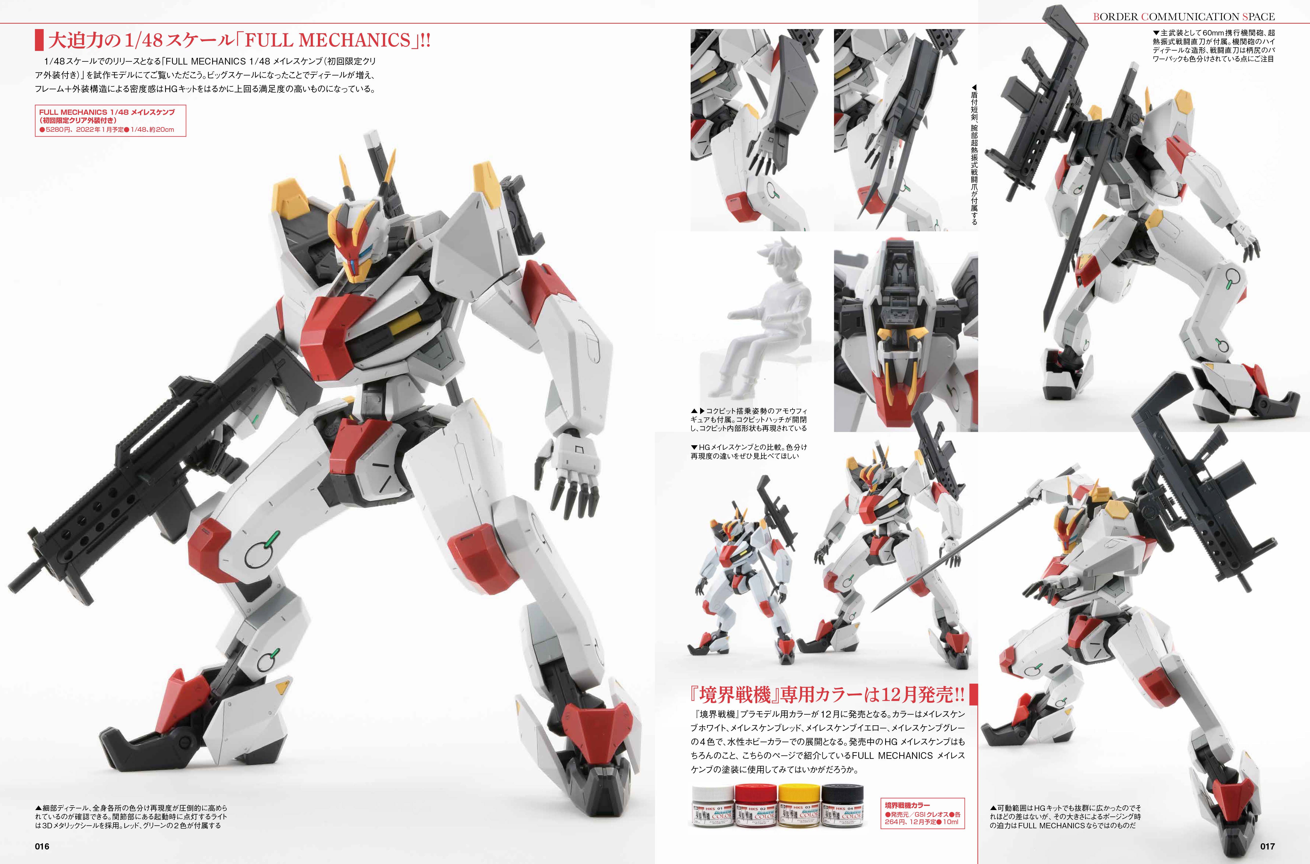 また、注目キット「FULL MECHANICS 1/48 メイレスケンブ(初回限定クリア外装付き)」の試作モデルを撮り下ろしで掲載!
