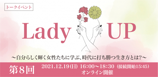 株式会社インターン(本社:東京都中央区、代表取締役:半澤洋)は、次世代を生きる女性の働き方・生き方を創造するイベント『第8回Lady UP(レディーアップ)』を2021年12月19日(日)に開催いたします。8回目となる今回はオンラインでの開催となり、取り組んでいる事業も経歴も異なる二名の女性経営者に対談形式でコラボレートいただきます。