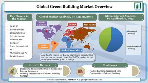 Research Nester Private Limitedは調査レポート「グリーンビルディング市場:世界的な需要の分析及び機会展望2030年」2021年11月 16日に発刊しました。これは、予測期間中に、市場の詳細な分析と、業界の詳細な洞察を提供します。レポートは、市場規模と決定に基づいてさまざまなパラメーターについて説明します。これらには、市場価値、年間成長、セグメント、成長ドライバーと課題、および市場における主要企業などが含まれます。