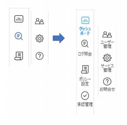 アイコンだけのメニュー名表示で分かりづらかった点を改善し、メニュー名を表示させることで、詳しくご利用いただける機能を直観的に把握することができるようになりました。