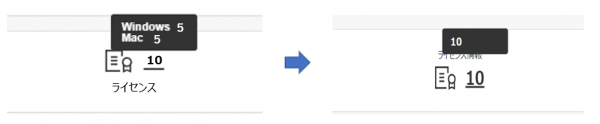 今までは、Windows、macOSが別で表示されていましたが、アップデート後はライセンス表示が統合され、OS別に数のチェックする必要がなくなりました。