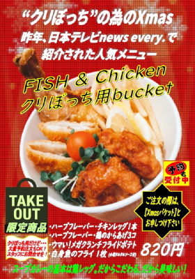 ■2020年12月に実施した「クリぼっちフェス」の取り組みが日本テレビ系のニュース番組で紹介された「お江戸スープカレーちゃはや庵」が、12月4日から去年よりボリュームもクオリティもアップさせ「クリぼっち用FISH&チキンbucket」を期間限定販売