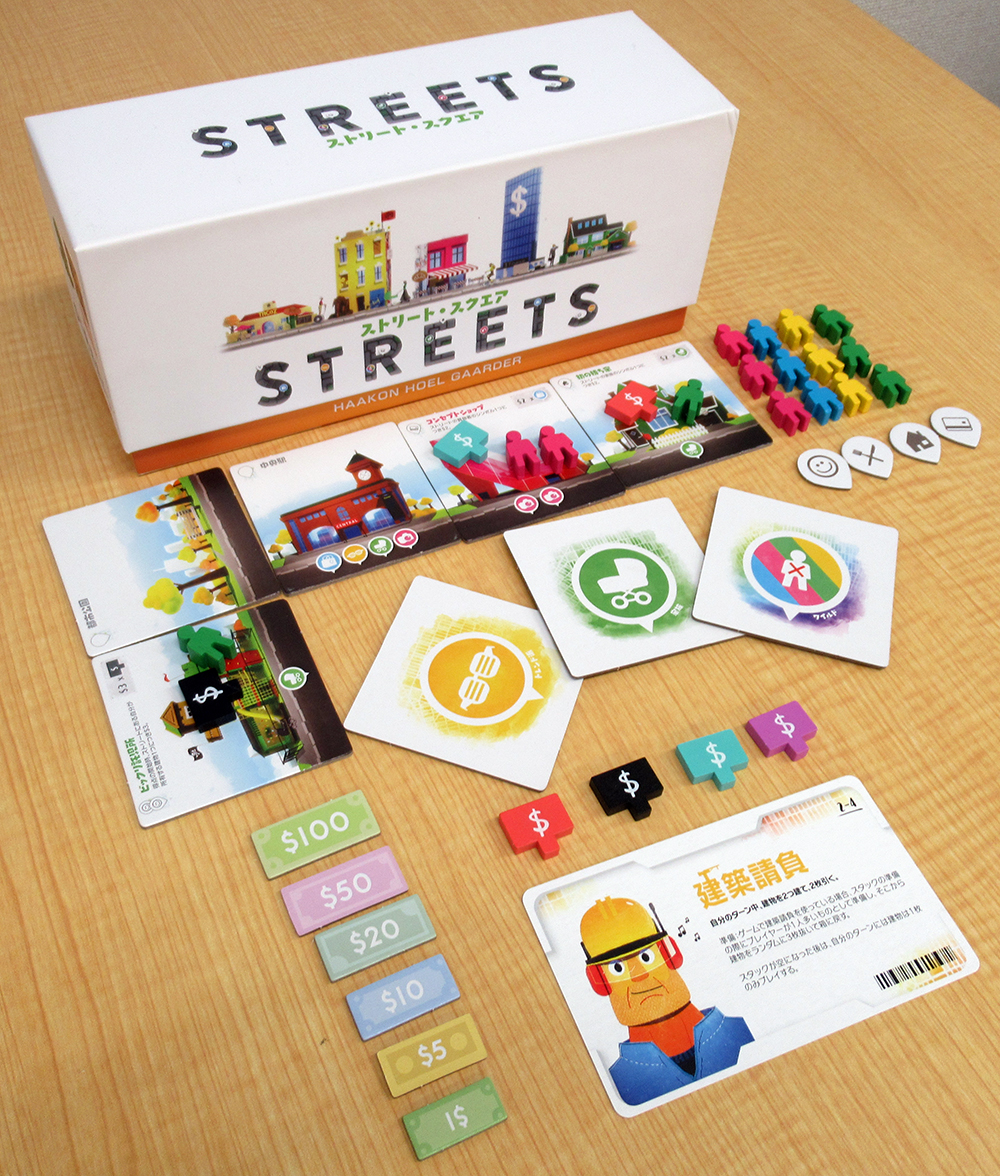プレイヤーは投資家となり、成長していく街に魅力的なストリートを作り、新たなビジネスや住宅に投資していきます。
