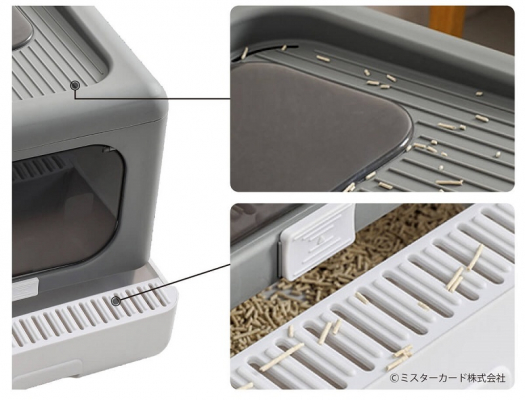 猫砂を落としやすいように内部のステップや、天板設計。