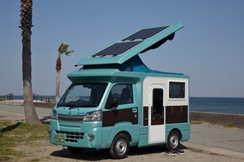 AMAHOは軽キャンピングカーの中では「軽キャブコン」というジャンルに属します。軽自動車ベースのため狭い道でも取り回しもしやすく、車内インテリアはキャブコンのような広い居住性を実現しています。今までの軽キャンピングカーに比べて電源設備内容が充実しているのが特徴です。