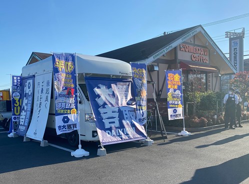 今回の出張買取イベントは、静岡県清水、埼玉県深谷、茨城県石岡の「コメダ珈琲店」協力のもと、店舗駐車場にて行われました。