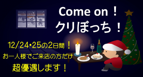 クリスマスに寂しいと感じる人、同じ境遇の仲間が集まっているところに行きたいという人におすすめのフェアです。