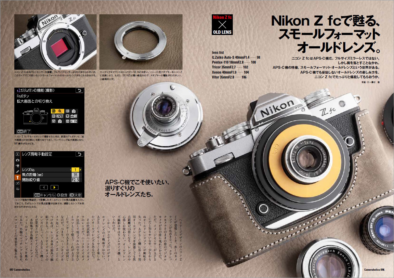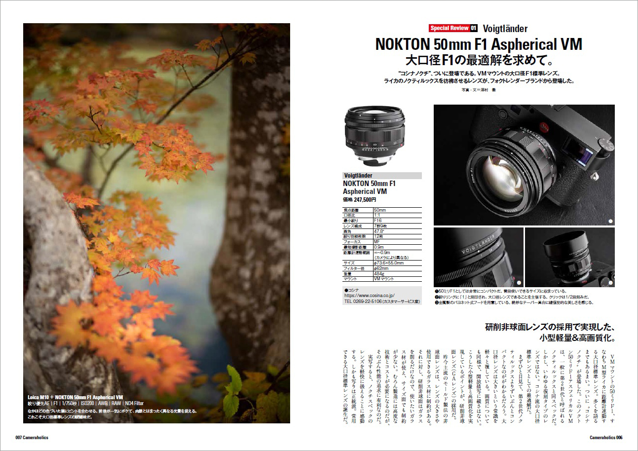 その他の企画では話題の「ニコン製カメラ Zfc 」とオールドレンズの組み合わせ指南や、第4特集ではユニークな製品ラインナップを誇るコシナのレンズを取り上げます。