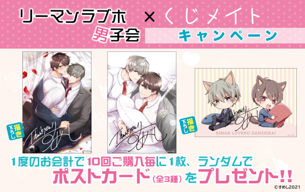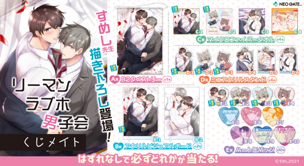 アニメイト通販の「くじメイト」に、創作BL『リーマンラブホ男子会』のオンラインくじが登場です。
