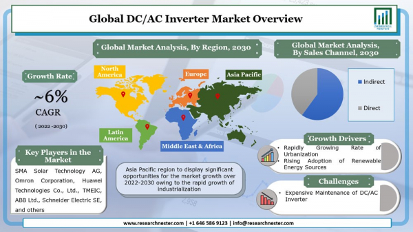 ● 世界のDC / ACインバーター市場は、2022-2030年の予測期間中にCAGRが約6%で成長することにより、重大の収益を上げると推定されています。