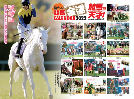この有馬記念号には毎年恒例となった特別付録『2022年金運カレンダー』も封入。今年は『伝説の名馬~最強の瞬間~』と題して、華々しくターフを駆けた稀代のキャラ馬たちの歴史的パフォーマンスにフォーカス、その雄姿が毎月見られるつくりとなっています。もちろん、例年好評を博している「騎手&調教師の誕生日」や「2022年のJRA開催スケジュール」、さらには「勝利の格言&リンク」も搭載しており、見て楽しい、読んで儲かる、唯一無二のカレンダーです。