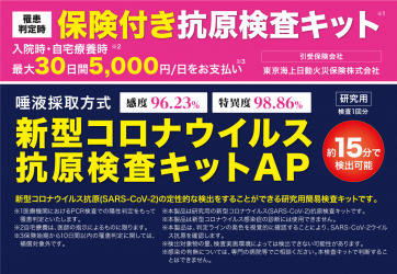 抗原検査キットAPには新型コロナウイルス罹患時の入院補償が付帯されています。