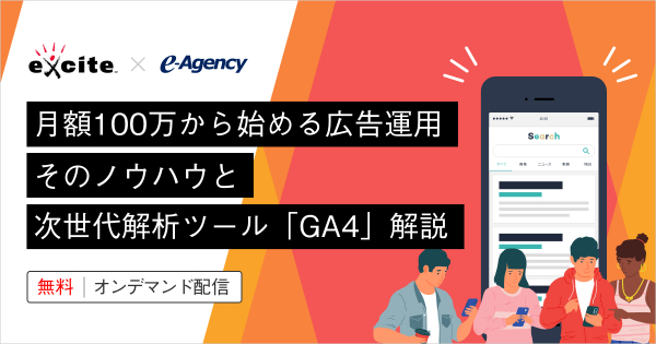 “おもてなしを科学する” 株式会社イー・エージェンシー(東京都千代田区、代表取締役:甲斐真樹、以下イー・エージェンシー)と、エキサイト株式会社(東京都港区、代表取締役社長:西條 晋一、以下エキサイト)は2021年12月15日(水)より、2022年1月31日(月)までの期間限定にて「月額100万円から始める広告運用そのノウハウと次世代解析ツール GA4解説」ウェビナーを共催します。