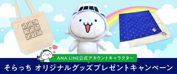 オリジナルグッズの発売を記念して、ANA LINE公式アカウントからANAマイレージクラブ会員情報を登録いただいたお客様の中から抽選で、「そらっち」オリジナルグッズをプレゼントいたします。