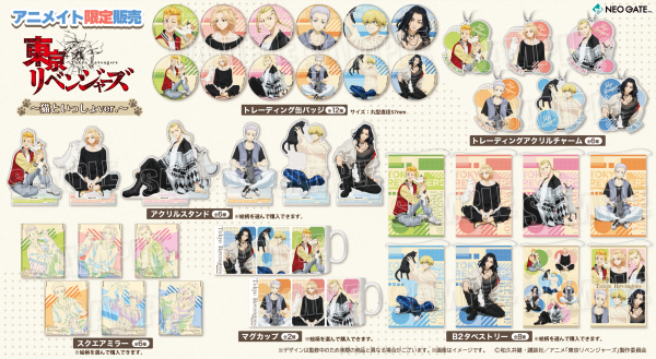 TVアニメ『東京リベンジャーズ』より、キャラクターが猫と仲良く戯れる《猫といっしょver.》の描き下ろしイラストを使用した商品の発売が決定いたしました!