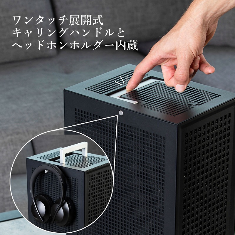 ・ワンタッチ展開式のキャリングハンドルとヘッドホンホルダー内蔵