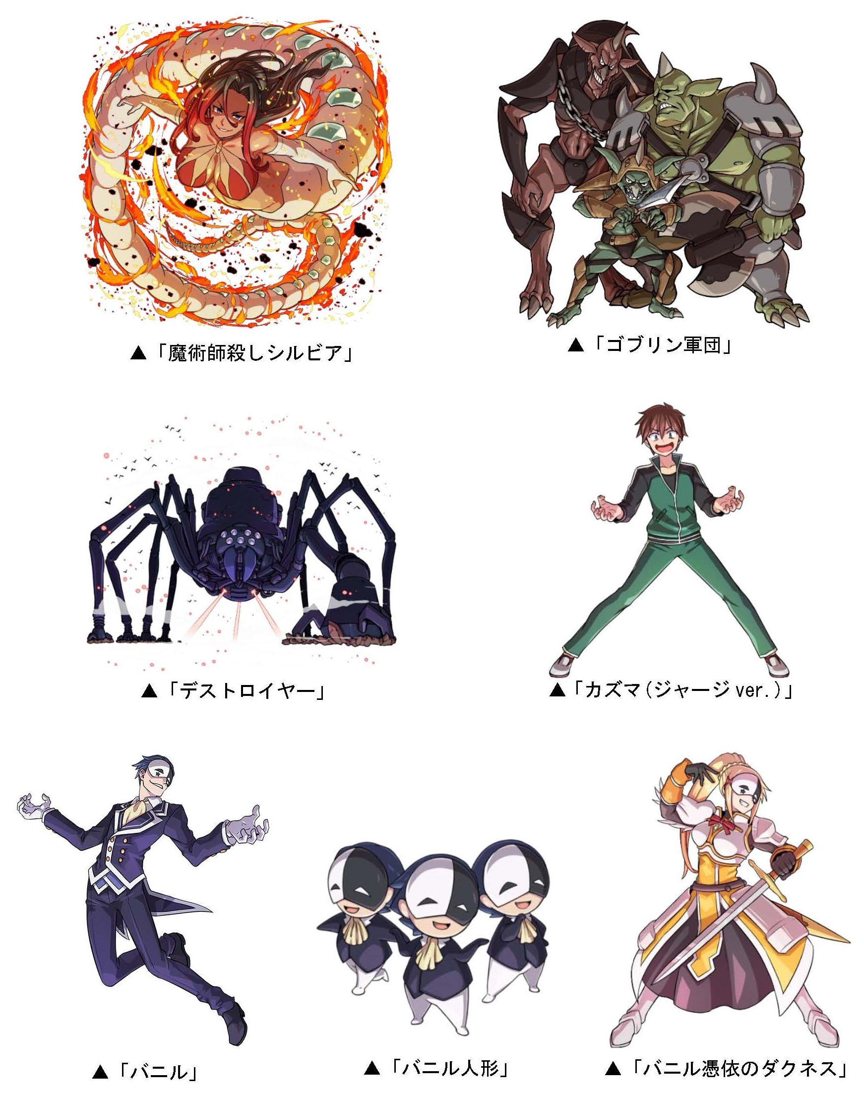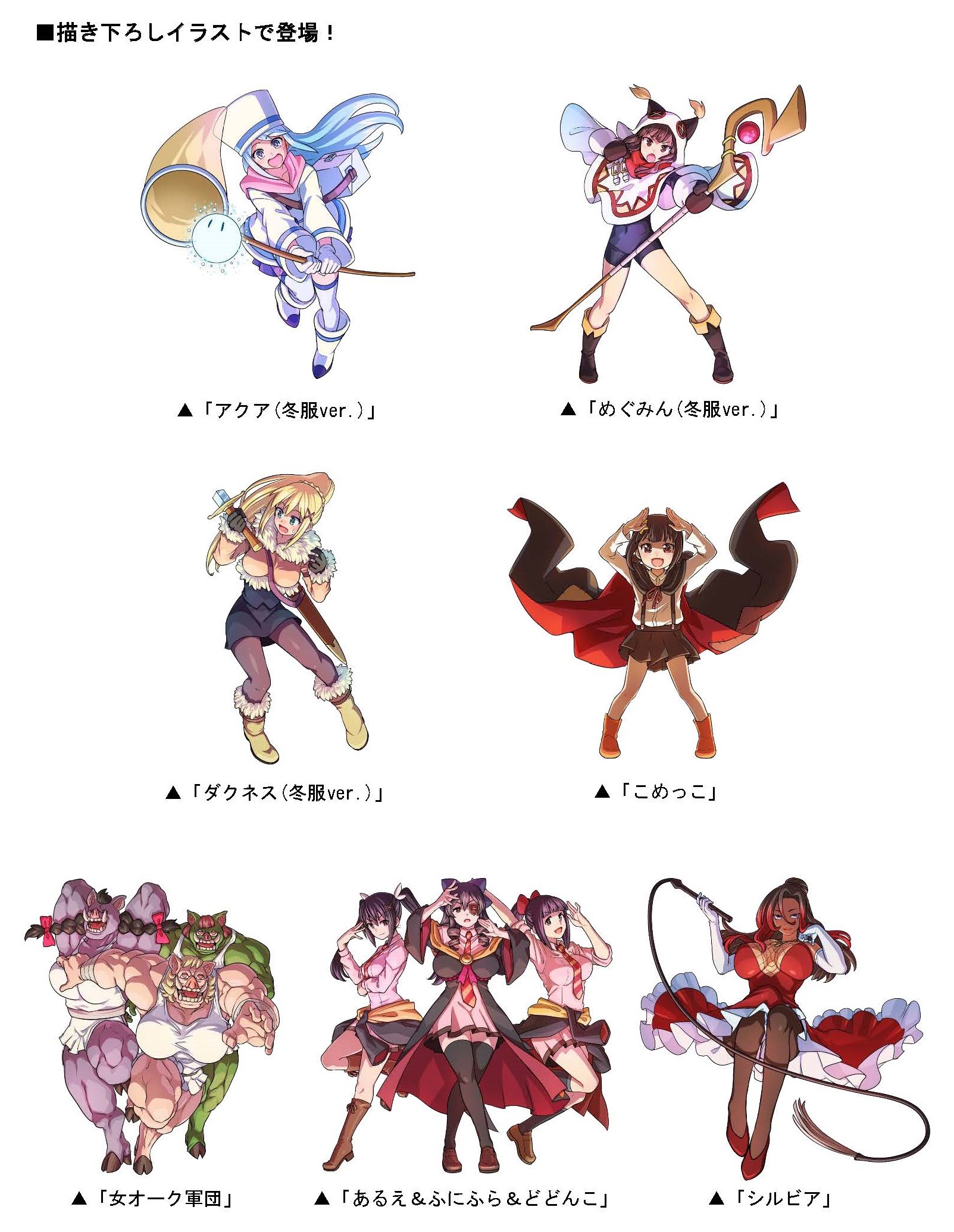 今回新たに「アクア(冬服ver.)」「めぐみん(冬服ver.)」「ダクネス(冬服ver.)」「こめっこ」「あるえ&ふにふら&どどんこ」「女オーク軍団」「シルビア」が登場!
