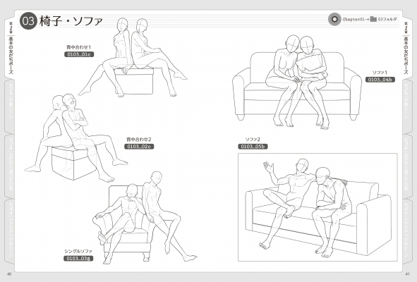 会話やハグといった基本のポーズはもちろん、学校の授業風景や課外活動、休日のお出かけ、グループでの飲み会やイベントなど多彩なシーンを掲載します。