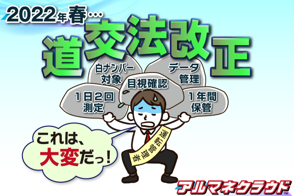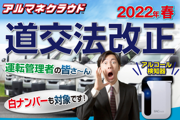 2022年4月~、道路交通法施行規則の法改正により、社用車を一定台数以上保有する事業者に対し、「白ナンバー車」でも「ドライバーの酒気帯び確認とその記録」が義務化されることになりました。