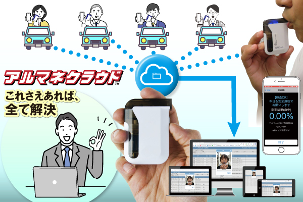 【アルコールマネージャー】と【アルマネクラウド】を使いこなせば、どこにいようと、WEB上からドライバーの測定結果が確認でき、ストレスなく、効率的に、日々の「飲酒運転管理」を行うことができます。
