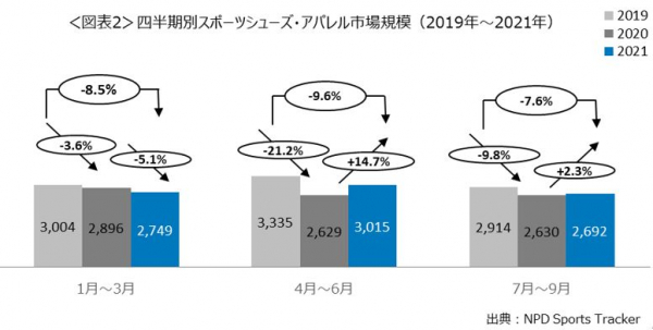 スポーツシューズ・アパレル市場情報サービス『Japan Sports Tracker*1』を提供するエヌピーディー・ジャパン株式会社(東京都港区、クリストス・クリストフォロー代表)は、2021年1-9月のスポーツシューズ・アパレル市場概況分析レポートを2021年12月20日に公表します。