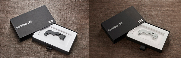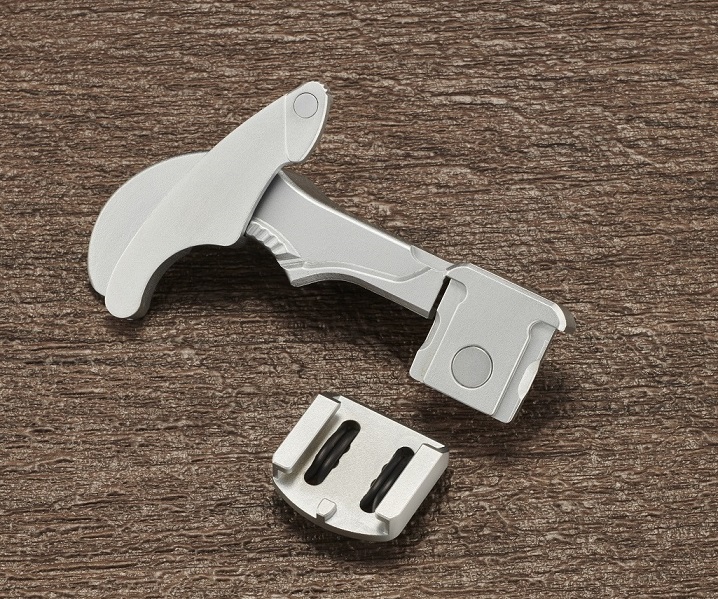 M3の巻き上げレバーをモチーフとしたデザインとなっており、素材はM10本体と同様の無垢の真鍮材を使用。CNC削り出しで製作されている為、強度も質感も充分。表面の仕上げもM10と同じくシルバークロームとブラッククロームの2色展開となり、装着しても違和感のない仕上がりとなっています。