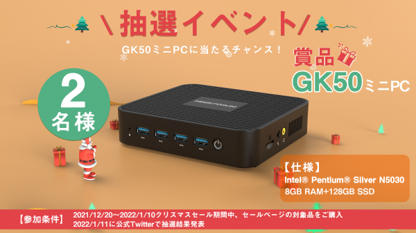 ● 2022/1/11に公式Twitterで抽選結果発表(https://twitter.com/Minisforumpc)