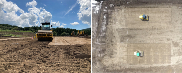また、有人作業では、6レーンの転圧となってしまいましたが、自律走行では、前述の通り、正確な転圧が可能なため、設定通り5レーンの転圧となることから、自律走行式振動ローラにより、現時点で20%の作業の省力化が可能であることが確認できました。