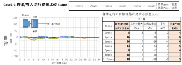 その結果、目標経路からのズレは最大20cm程度で、経路追従性能が極めて高いことが確認されました(図-1)。