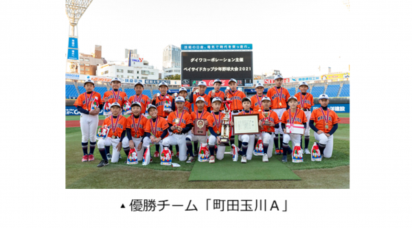 物流サービスを提供する株式会社ダイワコーポレーション(所在地:東京都品川区、代表取締役社長:曽根 和光)は、主催する少年野球大会『ダイワコーポレーション主催 ベイサイドカップ2021』の決勝戦を12月18日(土)に横浜スタジアムにて開催しました。決勝戦には、「町田玉川A(町田市)」と「元宮ファイターズ(横浜市)」が出場し、熱戦を繰り広げた結果、「町田玉川A」が6対1で優勝しました。