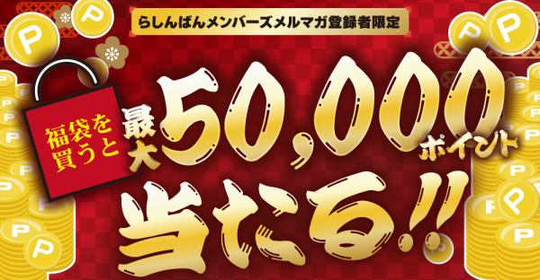 さらに、らしんばんメンバーズのメルマガ登録者限定で、福袋を購入すると自動的に最大50,000ポイントが当たる抽選にエントリーされます!