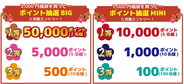 購入した福袋によって当選ポイントが変わるので、お間違えのないようご注意ください。